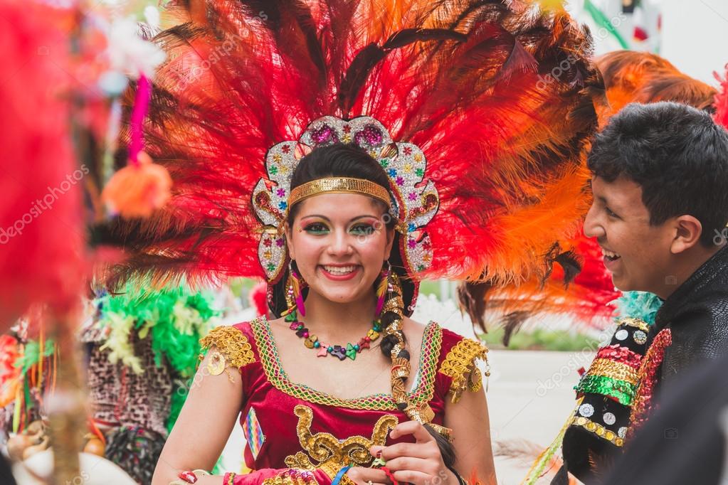 Pujllay dancers of the Quechuan people of Bolivia , in ... from c8.alamy.com