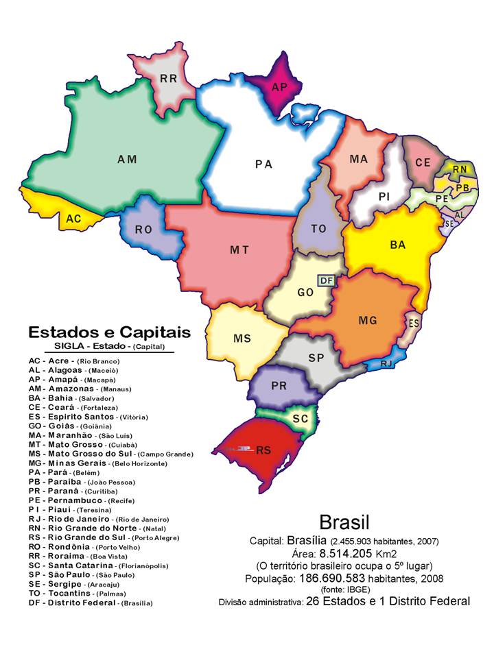 Mapas do brasil para montar suas atividades de geografia. 11,440 bilhões (26º) pib per capita: Jogo de geografia para conhecer os estados e capitais do brasil. Nela, o brasil conta com 26 estados e uma unidade federativa.